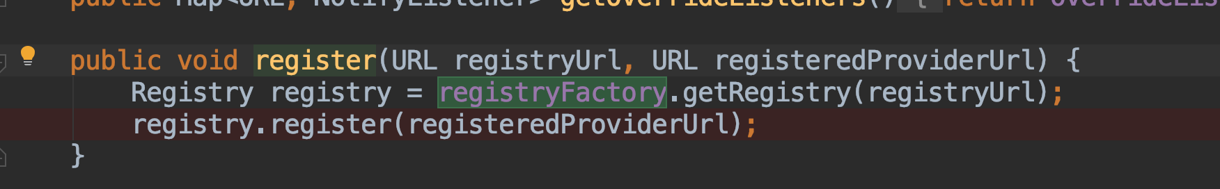 这里registryFactory是SPI的扩展点,这里以zookeeper注册中心为例,实际创建的对象是ZookeeperRegistryFactory对象.然后获取registry对象是ZookeeperRegistry.接着调用register方法进行注册.