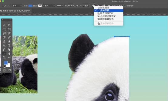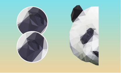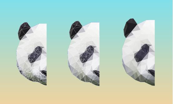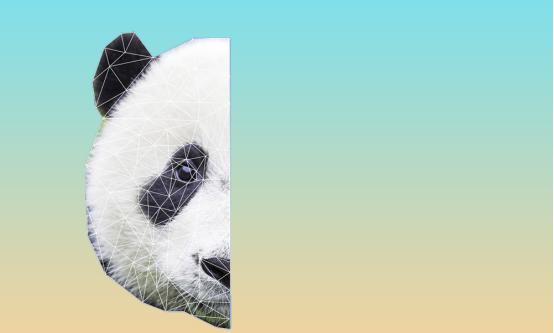 将熊猫的左半脸进行复制,复制后的图层进行水平翻转后,拼合在一起就是一个正面的全脸肖像了。最后根据背景进行图形的调色。