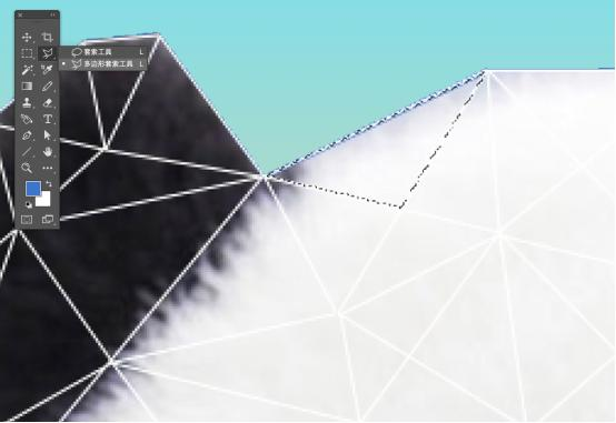 开始涂色,选中熊猫头部图层,利用多边形套索勾画三角形建立选区。