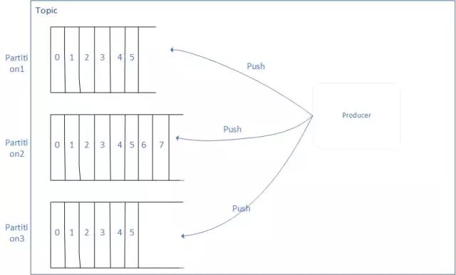 Kafka以Topic为单位进行消息的归纳,Producers向Topic发送(Push)消息,Consumers会消费(Pull)预订了Topic的消息。