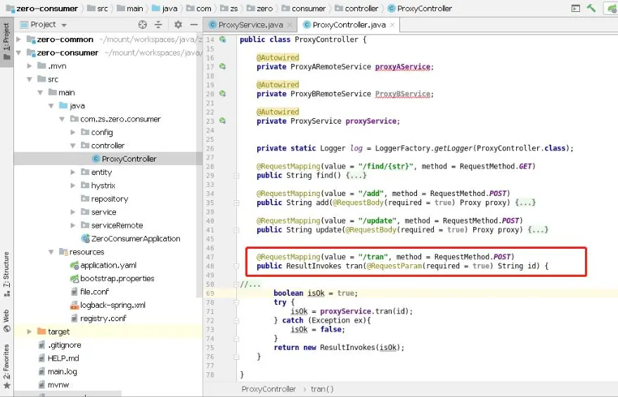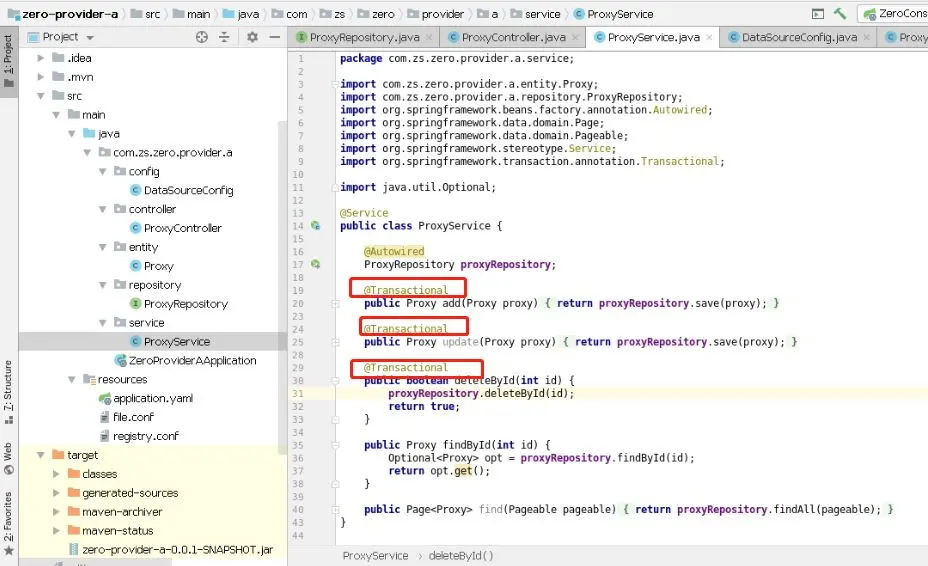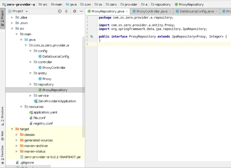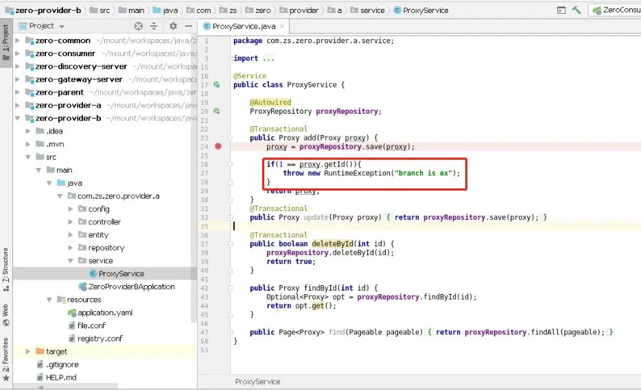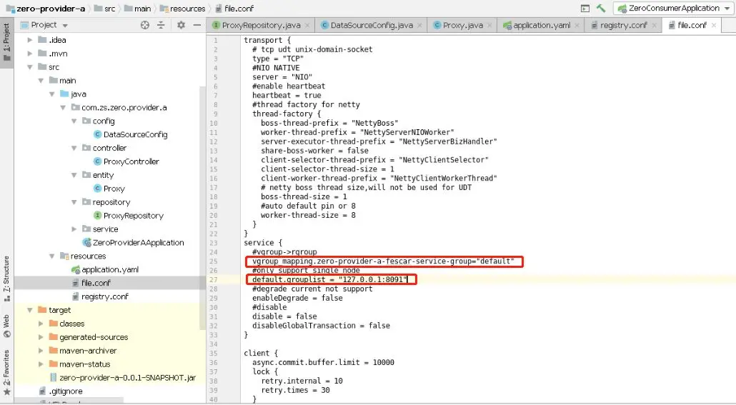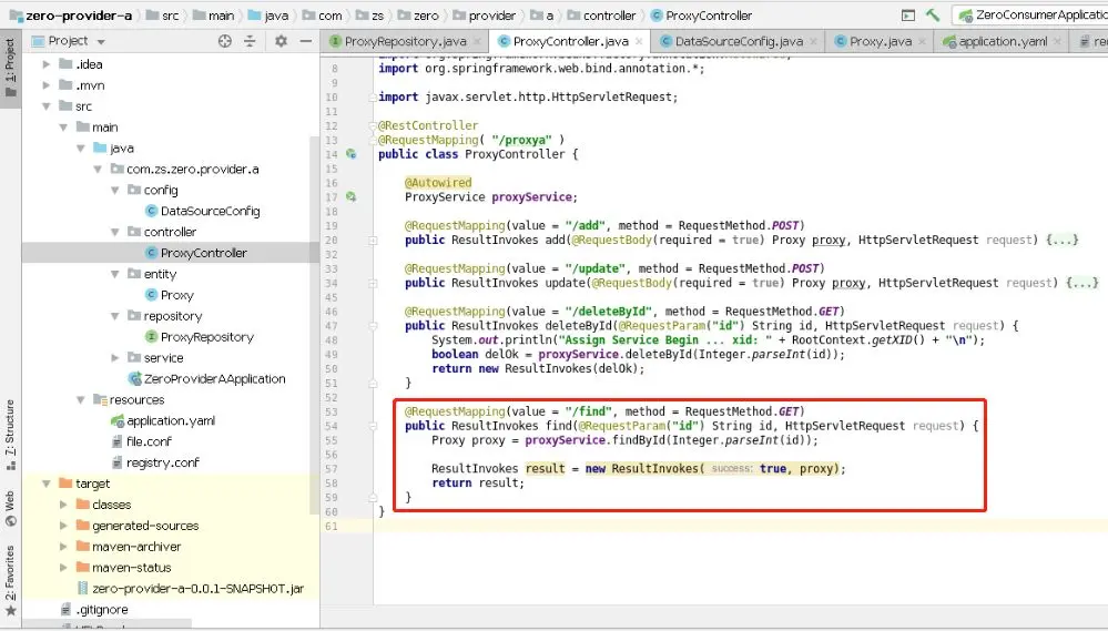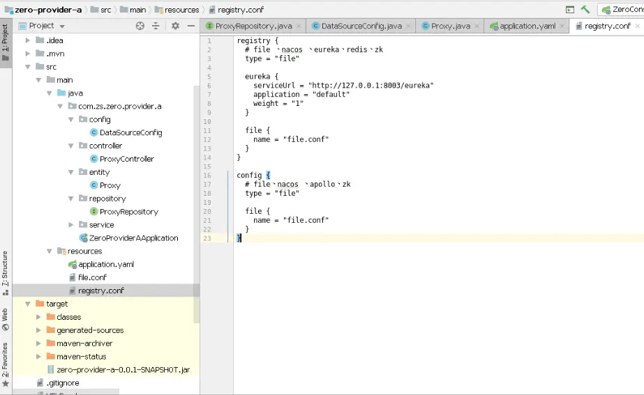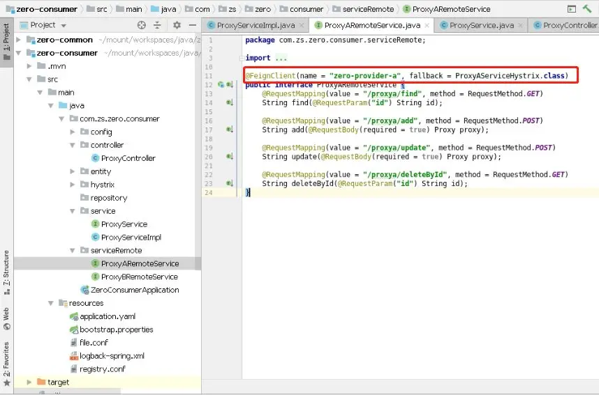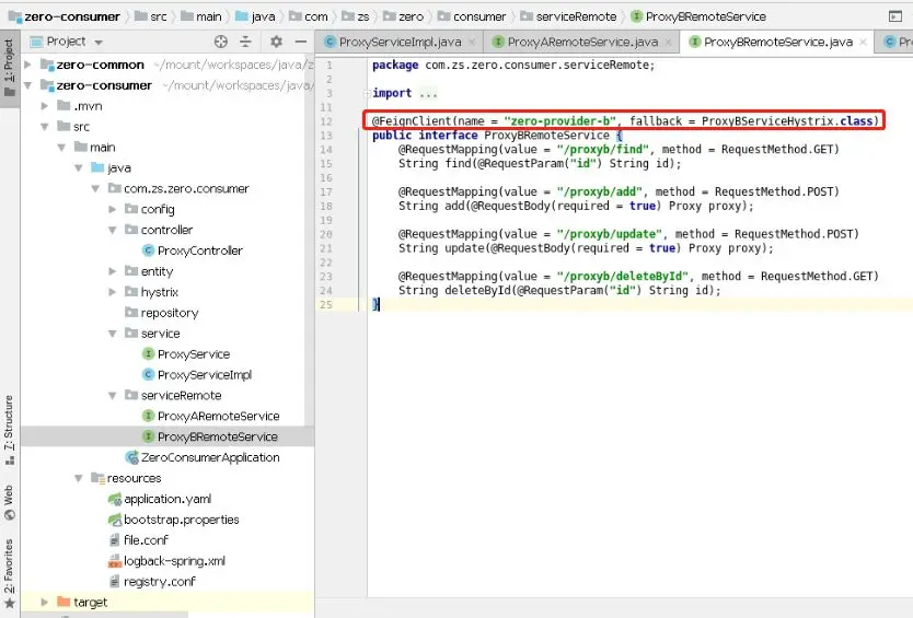配置同zero-provider-a工程,编写相应的业务逻辑。