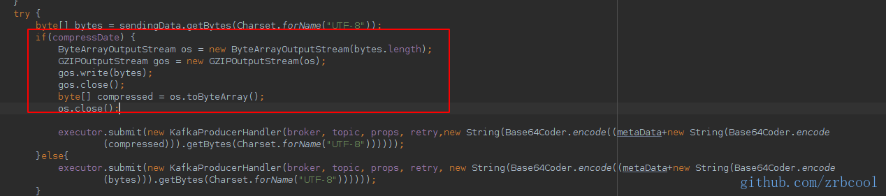 CoohuaAnalytics$KafkaConsumer:::send方法中Gzip压缩占比较高