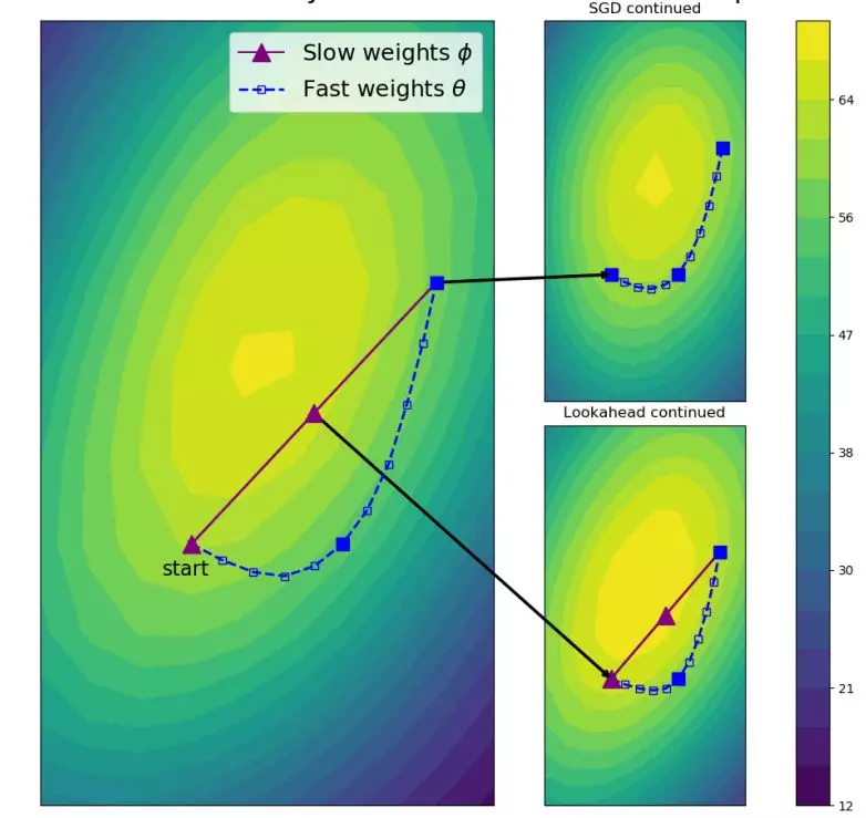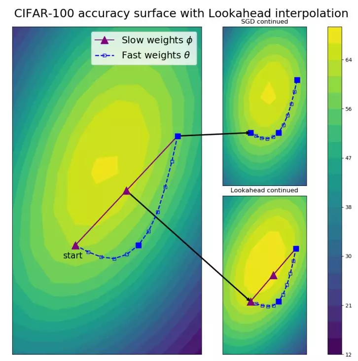 最近,来自多伦多大学向量学院的研究者发表了一篇论文,提出了一种新的优化算法——Lookahead。值得注意的是,该论文的最后作者 Jimmy Ba 也是原来 Adam 算法的作者,Hinton 老爷子也作为三作参与了该论文,所以作者阵容还是很强大的。