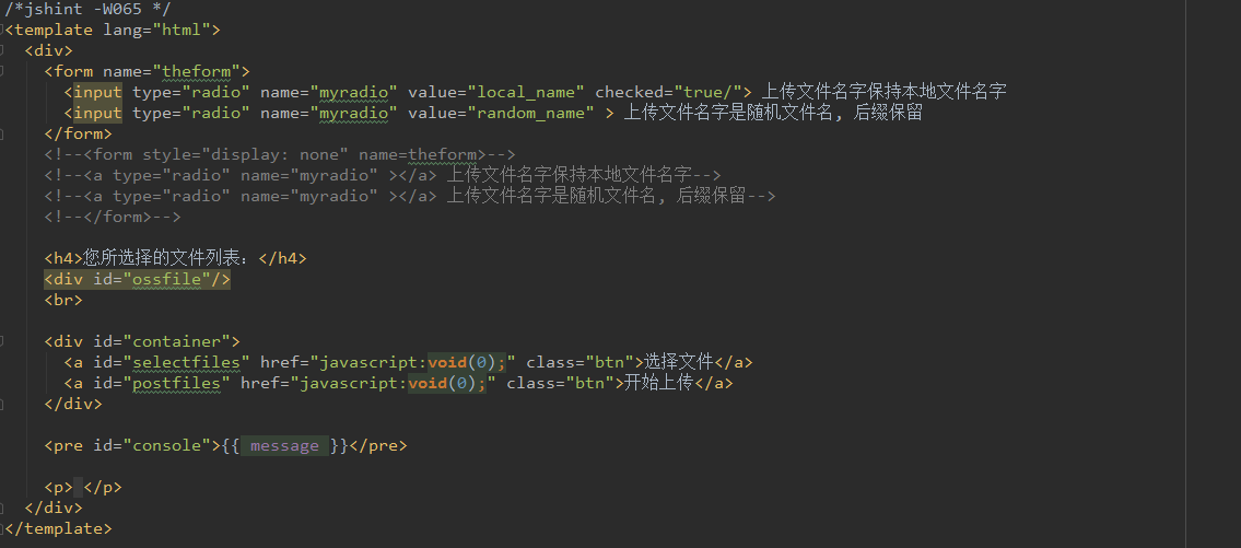 document.getElementById('ossfile').innerHTML += `<div id="${file.id}">${file.name} (${plupload.formatSize(file.size)})<b></b><div class="progress"><div class="progress-bar" style="width: 0"></div></div></div>`