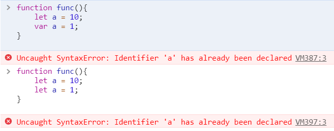 //报错:在 Let 声明的变量,需要在声明之后才能使用,且外部声明的temp变量,对语句块里面声明的temp变量不会有任何影响