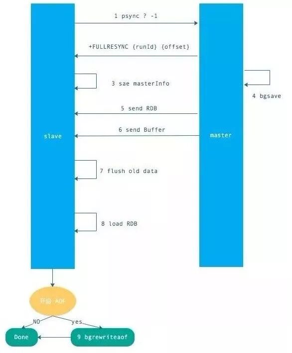 如果回复 +FULLRESYNC {runId} {offset} ,那么从节点将触发全量复制流程。