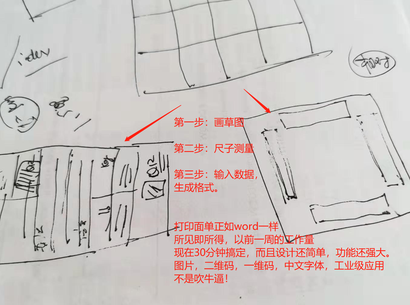 用pdf生成格式,自带QRcode和图片,一维码则用bwipjs动态生产。