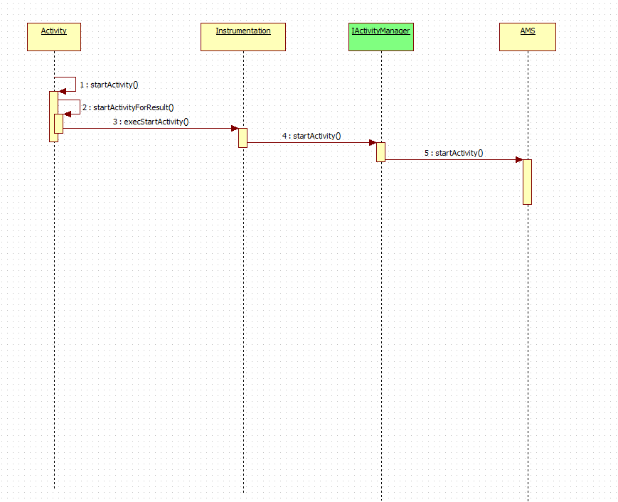 从应用调用一个startActivity方法开始,应用进程开始请求AMS启动Activity,然后在AMS中Activity完成它的一系列准备,最后再回到应用进程中开始回调Activity的生命周期,本文回答了一半这个问题,即本文讲解了应用进程开始请求AMS启动Activity,然后在AMS中完成它的一系列准备的过程,这个过程用时序图表示如下: