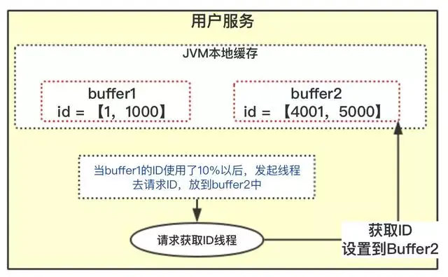 双buffer的方案,小伙伴们有没有感觉很酷,这样就达到了业务场景用的ID,都是在jvm内存中获得的,从此不需要到数据库中获取了。允许数据库宕机时间更长了。