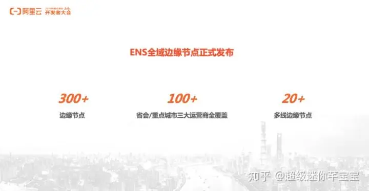在本次阿里云峰会上海站的现场,阿里云高级技术专家王广芳正式发布ENS全域节点,300+边缘节点算力基本覆盖全国省会城市三大运营商与热门地区的三线城市,自此阿里云边缘计算正式宣告进入“无处不在”的全新产品篇章。