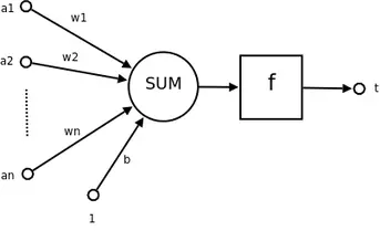 神经元= 感知器 ( )+ 触发器( 通过阈值b 判断是否输出 )- a1~an为输入向量的各个分量