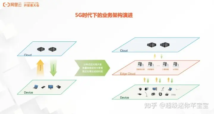5G标准定义了超低延时、大流量和大连接,5G标准里面定义的延时是超低延时,空口的延时小于1毫秒,边缘计算把计算下沉到离设备和终端最近的一些边缘位置上,比如移动基站和汇聚的机房,将原来通信的节点变成计算的节点,解决了多级网络转发带来的延时消耗,实现真正的低延时。同时,为了应对大带宽和高并发,同样基于边缘基础设施把业务逻辑和应用下沉,减轻对中心集中处理的压力。