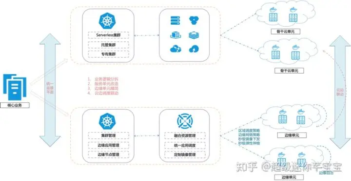 当云和网在基础设施方面问题已经解掉之后,另一件关键的任务就是做业务架构的演进。业务需要决定把哪些中心的应用需要做下沉,哪些终端的能力做上移,来实现性能和成本最优解?比较典型的云边端架构场景就是CDN,CDN将内容缓存在边缘,完成流量的收敛,实现终端访问的低延时,同时减少中心回源的带宽、优化成本。这个业务架构的演进是比较复杂的,ENS的使命就是让这件事情变得简单,从而去加速5G时代的业务架构升级的进程,支持孵化更多的创新应用。比如,在云游戏这个场景下,把游戏的业务逻辑处理、数据处理以及画面的渲染放在边缘上,终端就不需要有太多配置和性能的要求,这样终端成本可以大大降低,这也就是架构演进带来的突破和改变。