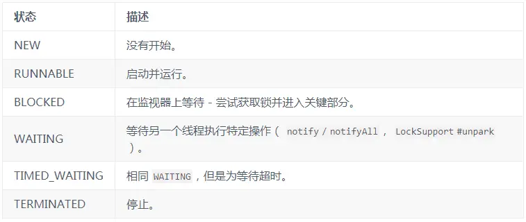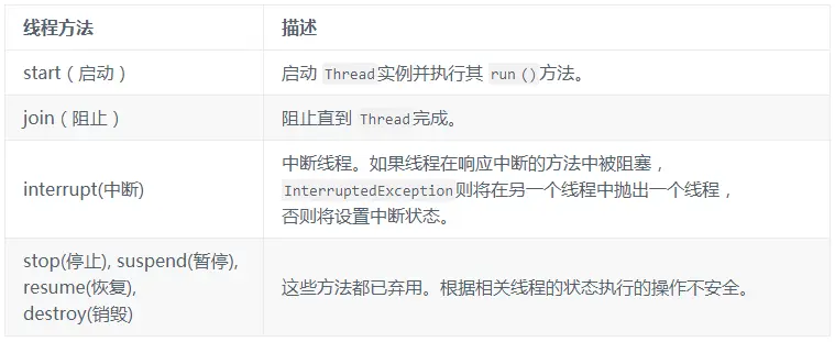 java.lang.Thread类用于表示应用程序或JVM线程。代码总是在某些Thread类的上下文中执行(用于 Thread#currentThread()获取自己的Thread)。