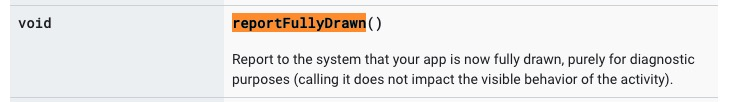 你还可以通过调用reportFullyDrawn()这是Activity的方法,可以来查看从启动到该页面的时间,根据你项目的需求,比如你有一系列懒加载,导致用户不能点击,那么你可以在懒加载完成之后,调用这个函数,告诉系统,然后可以查看。