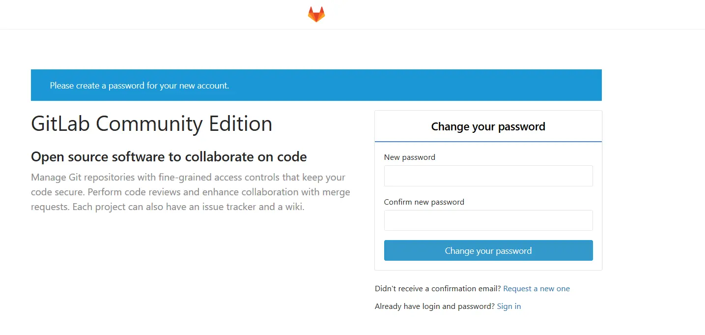 输入公网IP地址就应该可以查看到 Gitlab 的界面了,账号为 root ,填写一下登录密码就OK了