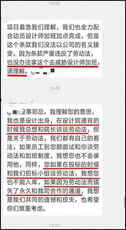 设计公司看完甲方留言后,表示没办法威胁设计师加班啊、严重违反劳动法了。