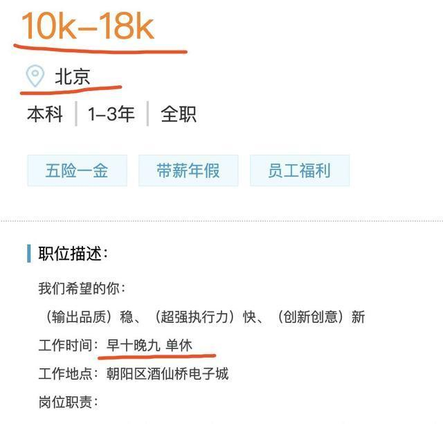 在大北京就这薪资tm还不让午休了,还单休呢,呵呵呵。让我去我都不去。写着10k-18k、一般16k就破天荒了。