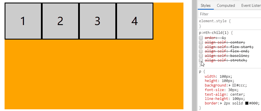 align-self: auto | flex-start | flex-end | center | baseline | stretch;