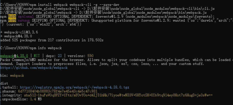 命令行执行 npm install webpack webpack-cli -g --save-dev