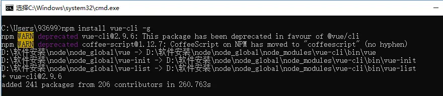 全局安装vue脚手架, 我这里是高版本的node 所以安装的是vue-cli 3.0 命令行执行 npm install -g @vue/cli