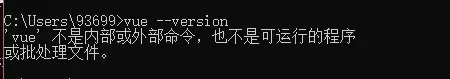 安装成功之后,运行vue --version 发现 命令出错