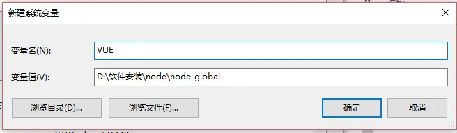 这时候发现就是环境变量没有添加,把vue.cmd路径添加到环境变量保存