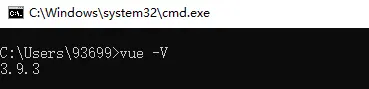 此时在重新打开cmd输入vue -V,显示出了版本号,说明已经vue已经安装成功,vue命令已经可以使用了