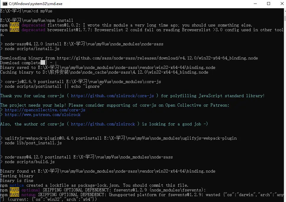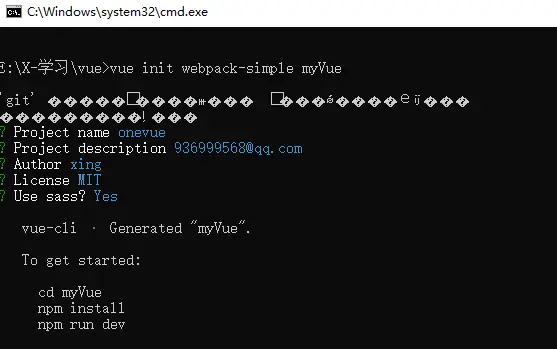 安装完之后,在执行命令 vue init webpack-simple myVue