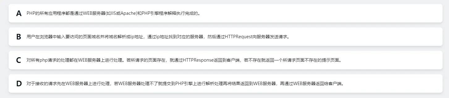 下列关于PHP工作原理说法不正确的是()(选择一项)