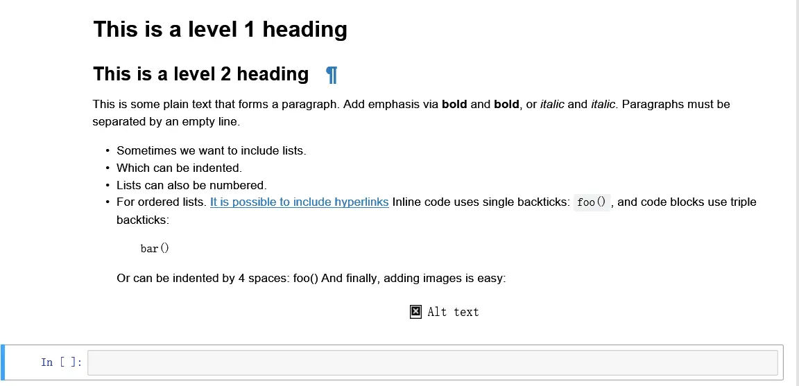 可以尝试在 Jupyter notebook 中输入下面的文字,记住是在 Markdown cell 中: