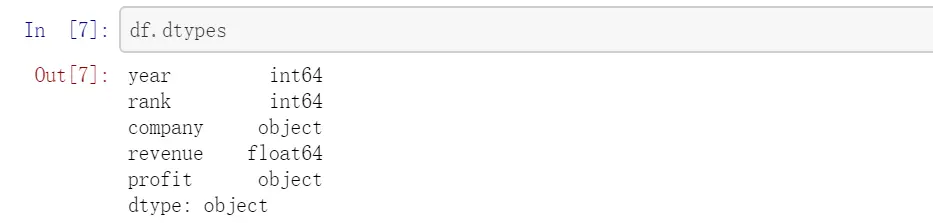 接着,我们再查看数据集是否和我们希望导入的一样,一个简单的检查方法就是查看数据类型是否正确: