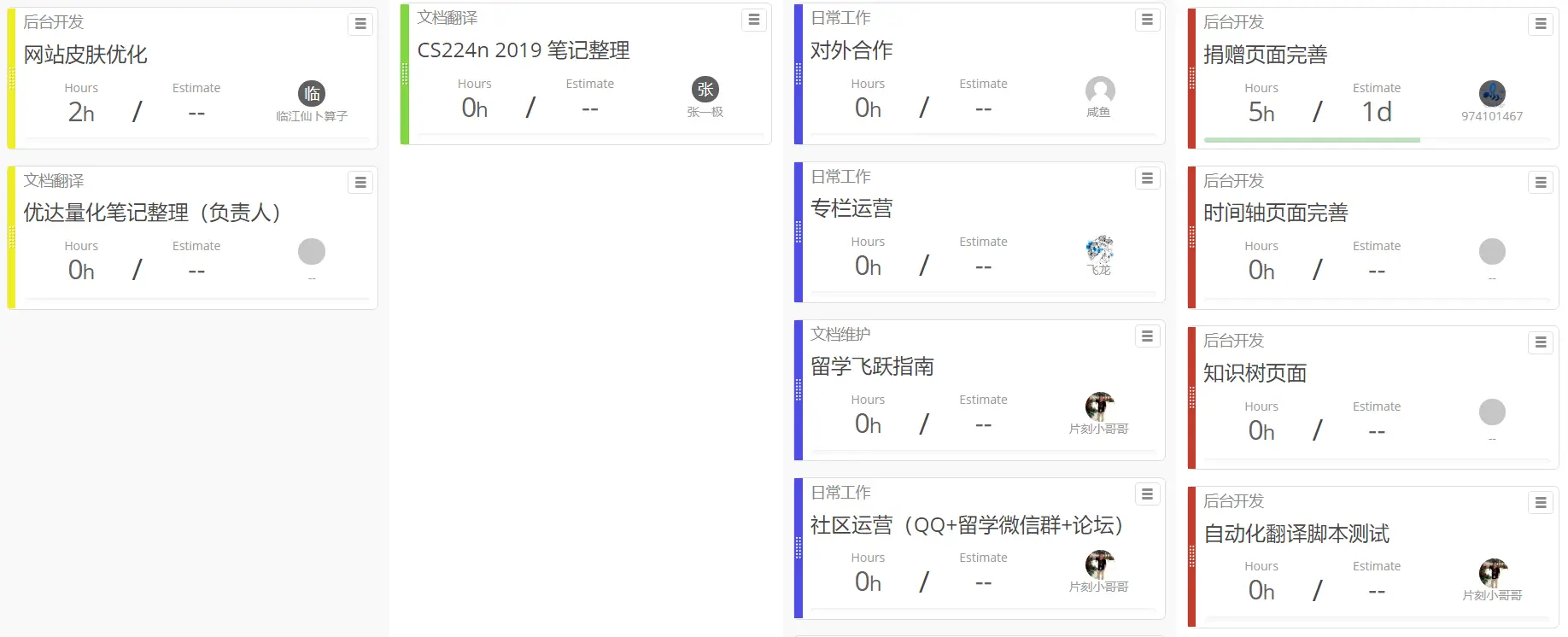 - 现有翻译项目可以直接在 ISSUE 中认领,翻译/校对三个文档就可以申请当负责人。