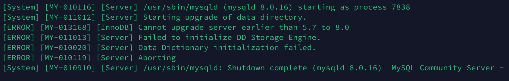 从5.6更新到8.0必须由5.7过渡,启动时如有以下报错 15577618690130.jpg