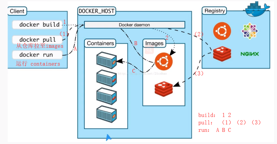 3.registry可以理解成是一个仓库,有很多公司都把自己的产品打包成镜像发布到dockerhub中,供用户下载。