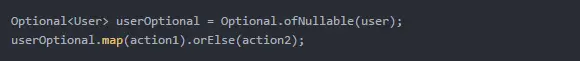 如果登录用户为空,执行action1,否则执行action 2,使用Optional优化之后,让非空校验更加优雅,间接的减少if操作