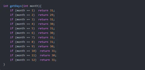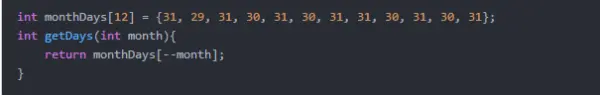 来自google解释,这是一种编程模式,叫做表驱动法,本质是从表里查询信息来代替逻辑语句,比如有这么一个场景,通过月份来获取当月的天数,仅作为案例演示,数据并不严谨。