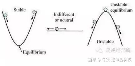 一个典型的例子是单摆, 单摆的微分方程有两个取零的点,但是你通常看到摆处在最低点却极少有机会看到一个处在顶点的单摆。原因很简单,单摆的低谷是稳定定点而高点是不稳定的。 除非你一开始就静止在最高点而且排除任何外力,否则最轻微的偏离就可以导致单摆回到稳定的最低点。