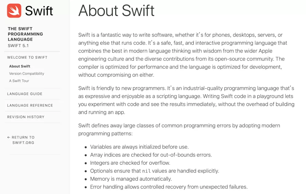 其实任何的学习官方的文档是最新的,也是最权威的!按照常理应该首推,但是我不认为每一个同学的学习能力以及英文阅读能力能够跟上。所以降为线路二。还有另外一个理由:当你看完[菜鸟教程:Swift基础],你再来看官方文档会更有感觉!