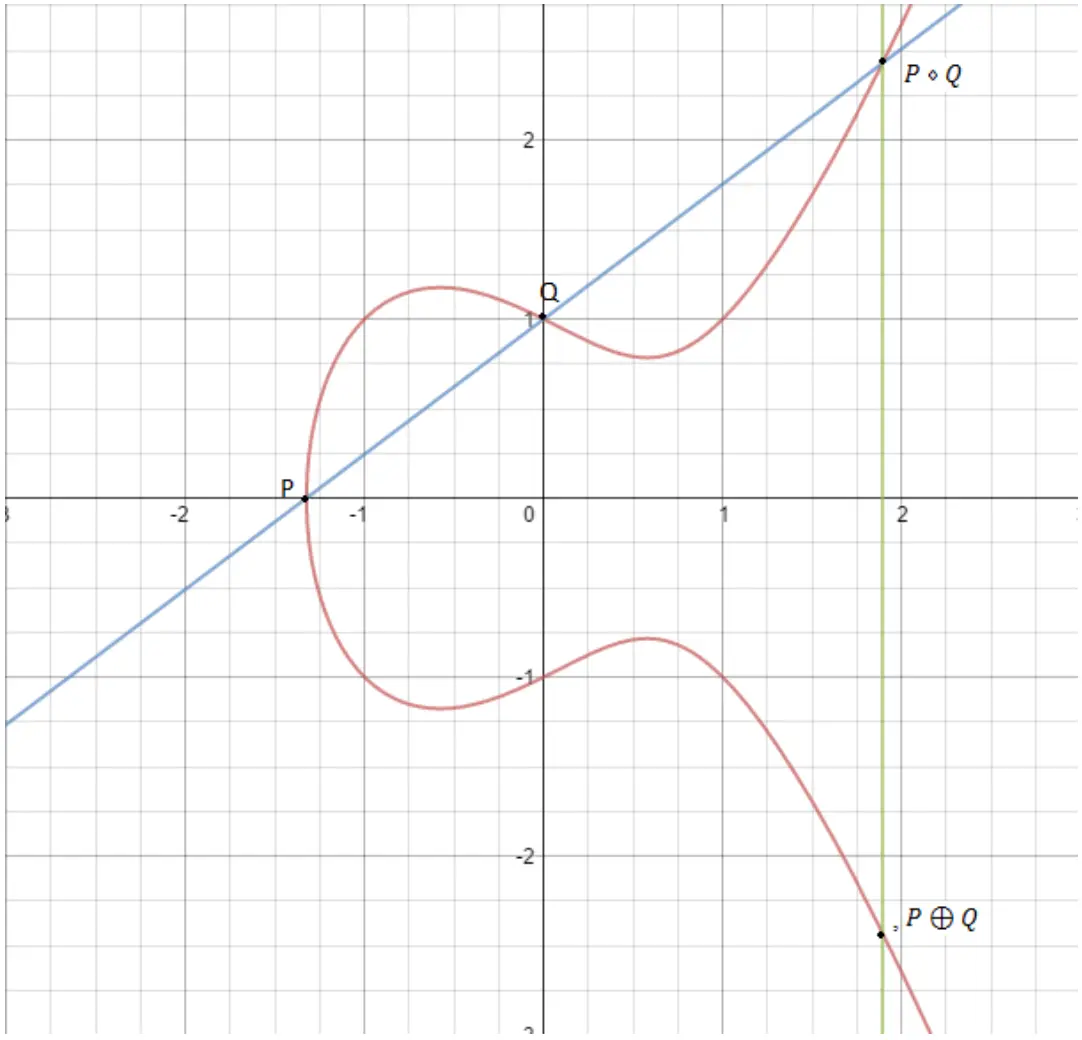 。继而定义椭圆曲线点加法: