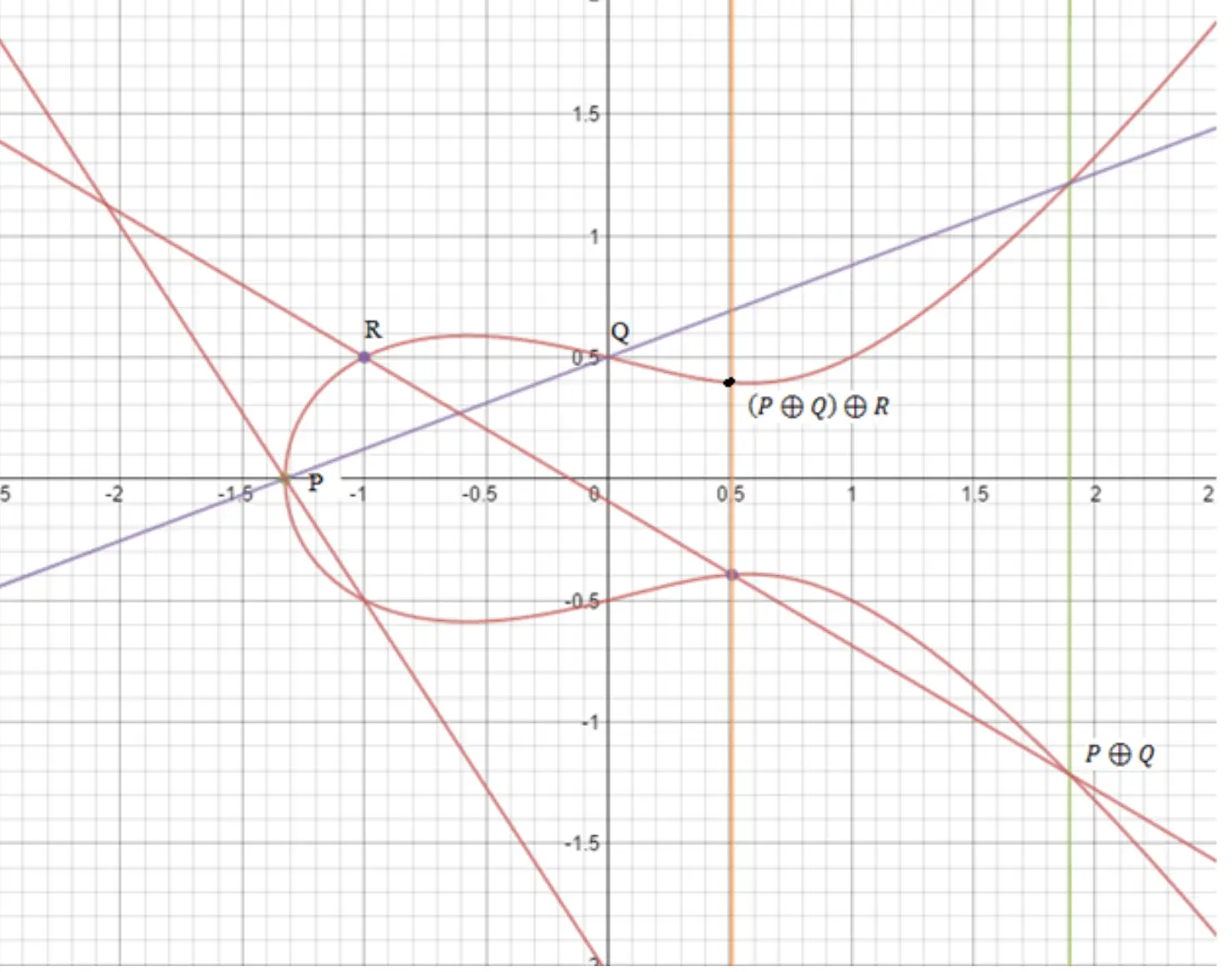 两个点的直线与椭圆曲线的交点记作