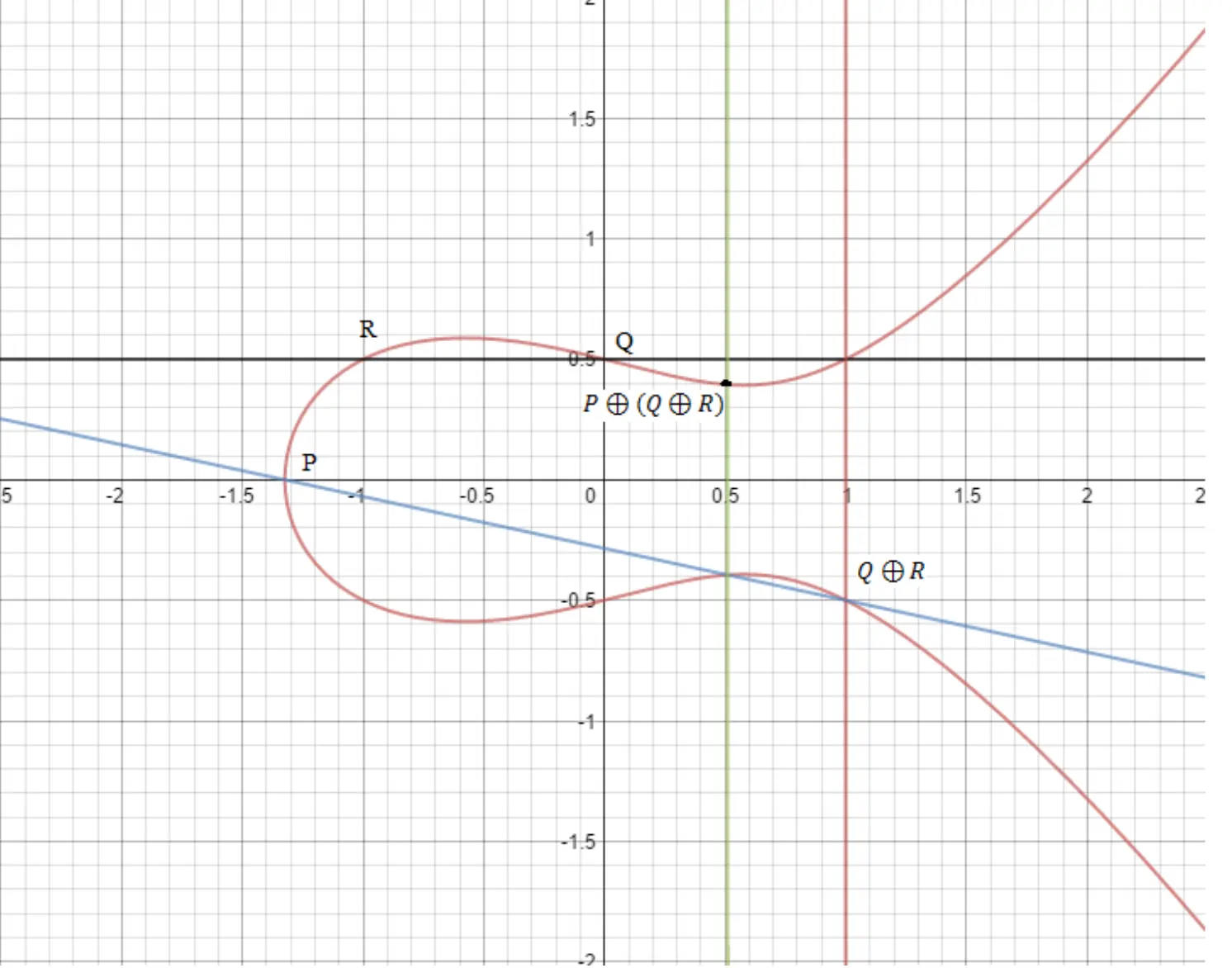椭圆曲线点加法:椭圆曲线上经过 和