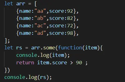 只要数组中的某一个元素符合指定的条件,就会返回真,否则返回假
