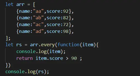 如果数组中的所有元素都符合指定的条件,才返回true,否则返回false。
