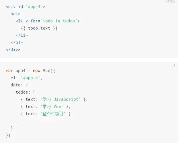 v-for:该指令可以绑定数组的数据来渲染一个项目列表: