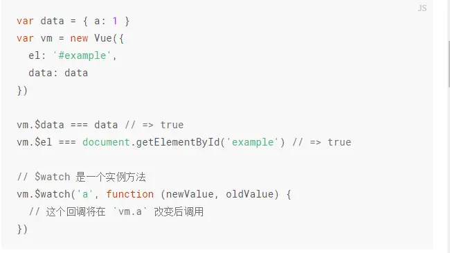 除了数据属性,Vue实例还暴露了一些有用的实例与方法。它们都有前缀$,以便与用户定义的属性区分开来。例如: