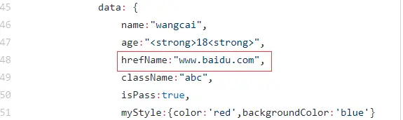 这里的href是参数,告知v-bind指令将该元素的href特性与表达式url的值绑定。