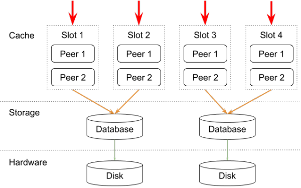 对常见的系统来说,越核心的组件往往状态越重扩展的代价也越大,层层拦截快速降低需要深入到核心组件的请求量对提高性能是非常有效的手段。首先我们通过缓冲分Slot 的方式来扩展集群所能缓冲的数据规模。接着进一步在 Slot 内通过多副本的方式提升单个 Slot 缓冲数据集的读取吞吐,将大量的请求拦截在系统的缓冲层进行消化。如果请求不可避免的走到了最终的数据库组件上,我们还可以利用效率较高的压缩来继续降低落到物理设备上的IO压力。