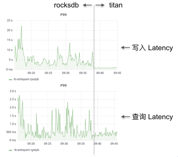 在知乎内部采用同已读相同的架构我们还支撑了一套用于反作弊的风控类业务。同已读服务极端的历史数据规模不同,反作弊业务有着更加极端的写入吞吐但只需在线查询最近48 小时入库的数据。TiDB 3.0 的一些新特性在反作弊业务上比 2.1 有了质的提升,因此我们从 TiDB 3.0 rc1 开始就在反作弊业务上将 TiDB 3.0 引入到了生产环境并在 rc2 之后不久开启了 Titan 存储引擎。TiDB 3.0 的 gRPC Batch Message 和多线程 Raft Store 提升了集群吞吐能力让我们可以用更少的资源投入来解决同样的业务问题,Titan 引擎极大的改善了业务的读写响应时间的稳定性。除此之外 3.0 的分区表功能也可以更好的利用业务 48 小时查询时效的业务特点来提升查询效率。