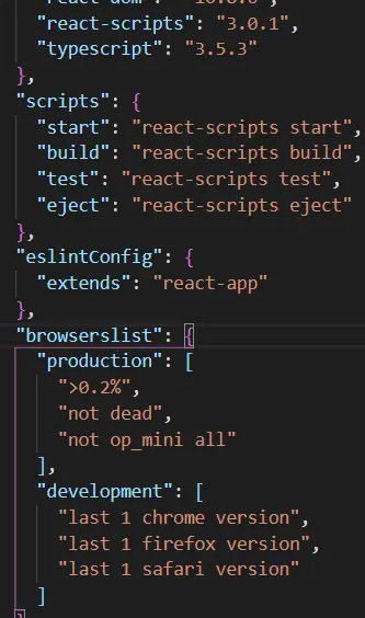 [求助react+ts浏览器兼容问题] justdagege 2019-07-27 476 阅读1分钟 使用npx create-react-app --typescript 搭建 react+ts 项目后, 查看package.json中 react-scripts的版本是3.0.1 但是browserslist里的production没有写ie>11 (直接使用create-react-app搭建的js项目中,会有ie要求>11)针对这种情况 需不需要做降级处理啊?